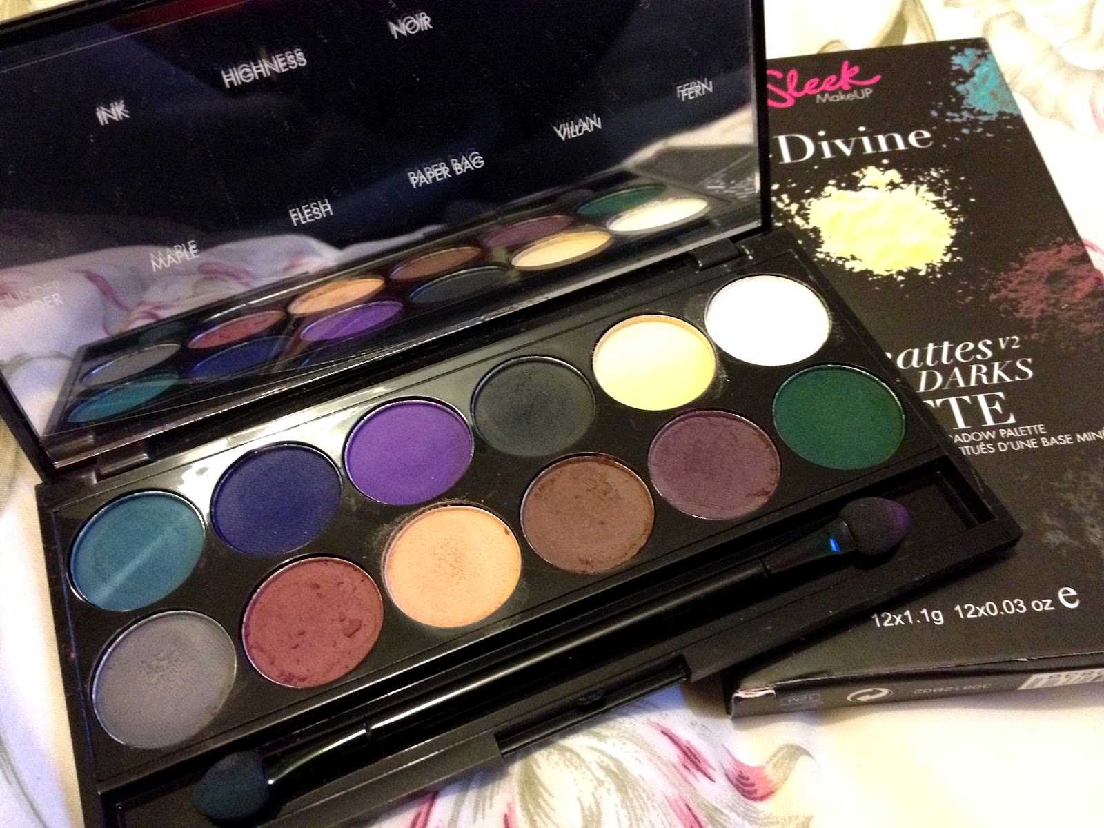 The palette contains 12 1g eyeshadows in a range of gorgeous 'dark' colours. I bought mine for £7.99 and there is also a 'Brights'(they don't lie about this, bright for sure!) matte palette.